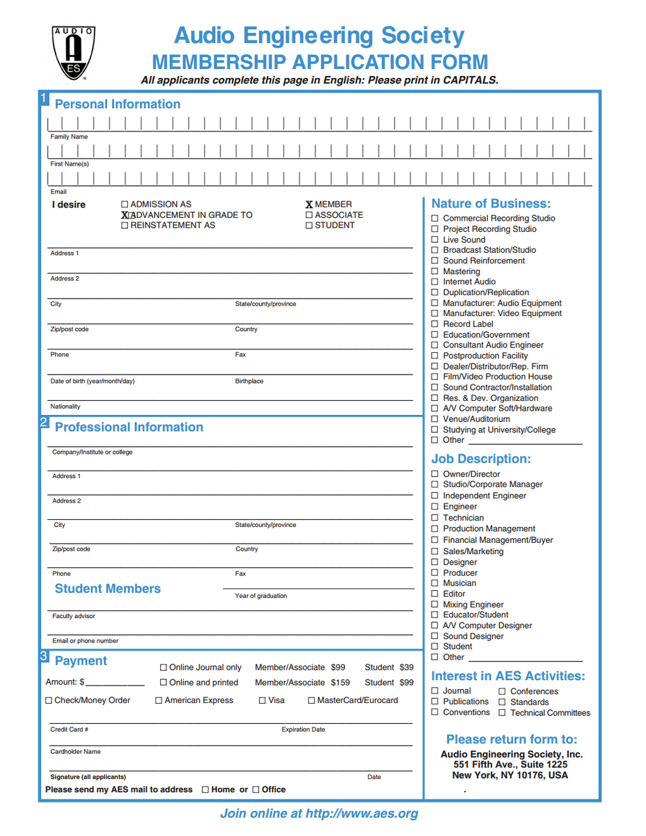 Upgrade Application Form - Audio Engineering Society - Los Angeles